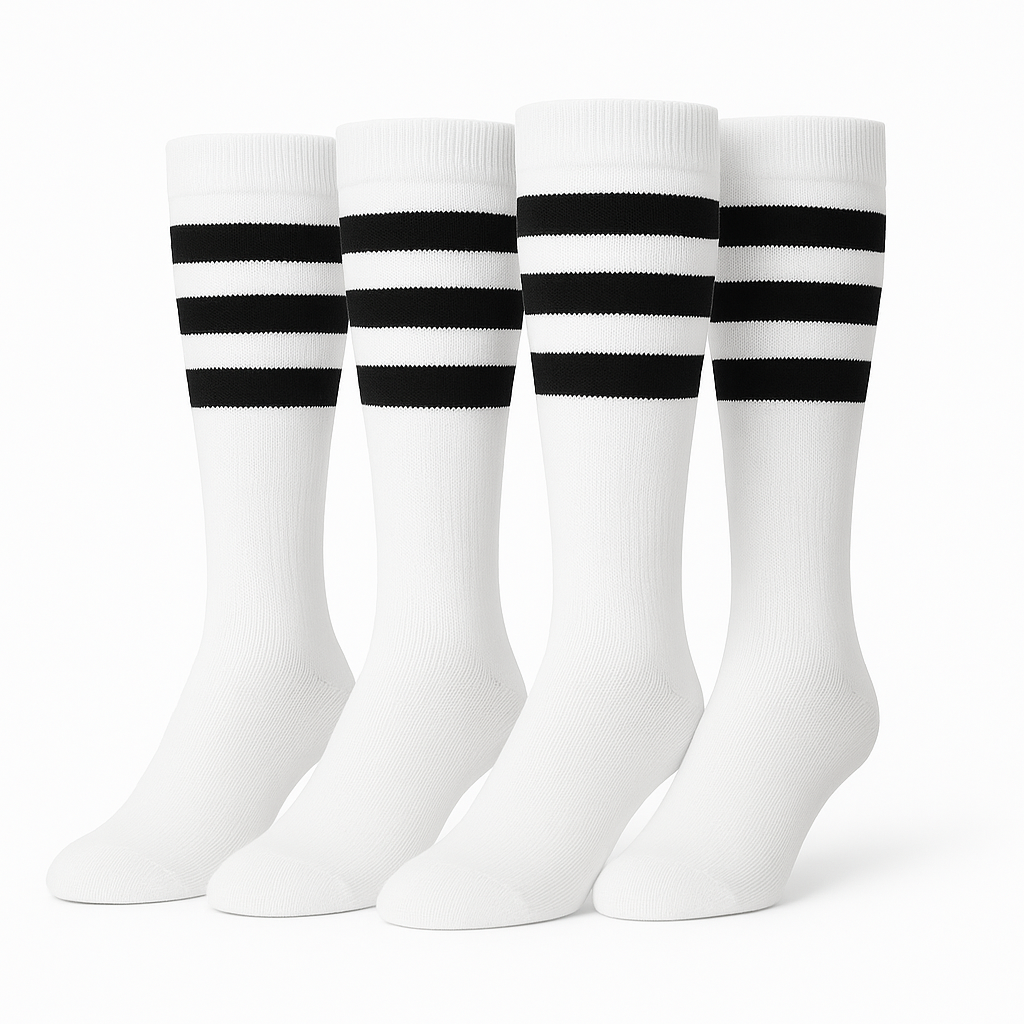 Pachetul conține 2 perechi de șosete înalte, realizate din bumbac moale și confortabil, ideale pentru purtare zilnică, sport sau ținute casual. Designul modern cu 3 dungi negre adaugă un aspect stylish, iar elasticul rezistent din partea superioară asigură o fixare perfectă fără să strângă.
