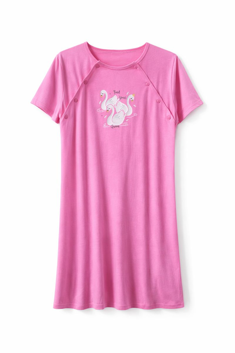 Sistemul practic cu nasturi laterali permite acces rapid și discret pentru alăptare, fără a fi nevoie să scoți complet cămașa. Croiala lejeră oferă libertate de mișcare și confort sporit, iar culoarea roz, împreună cu imprimeul delicat, adaugă un plus de feminitate.