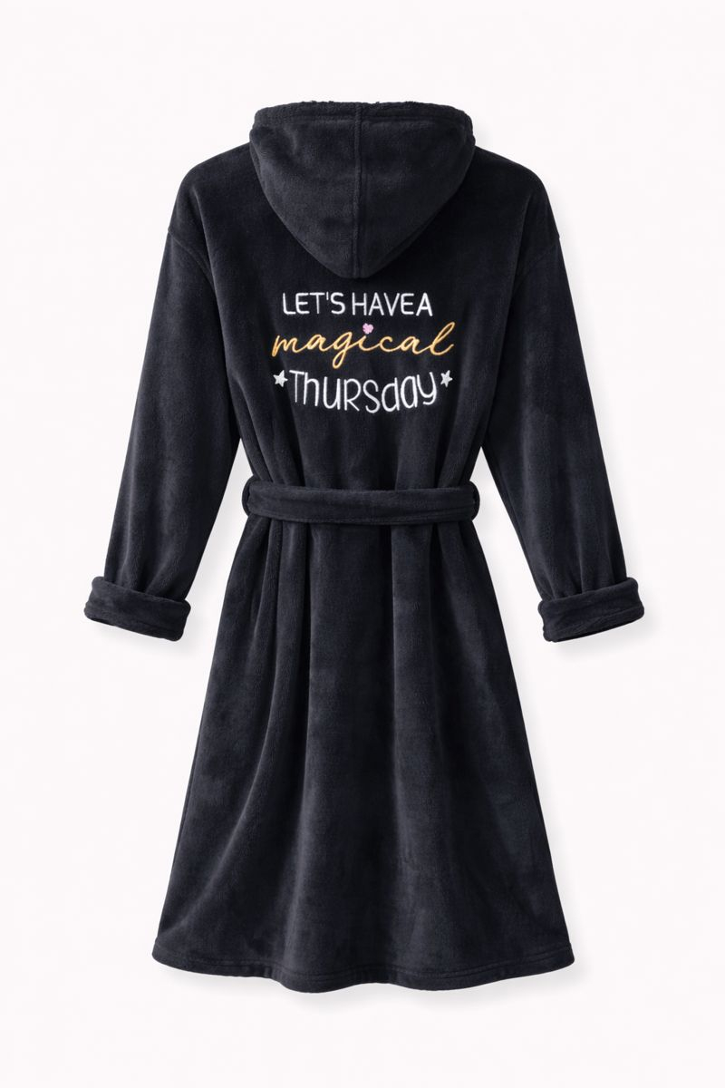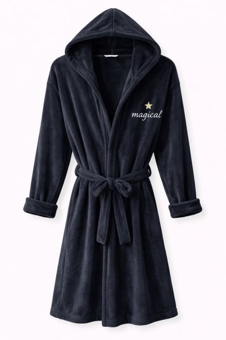 Designul modern este completat de broderia delicată „magical”, care adaugă un plus de stil și personalitate. Ideal pentru dimineți liniștite, seri răcoroase sau momente de răsfăț acasă.