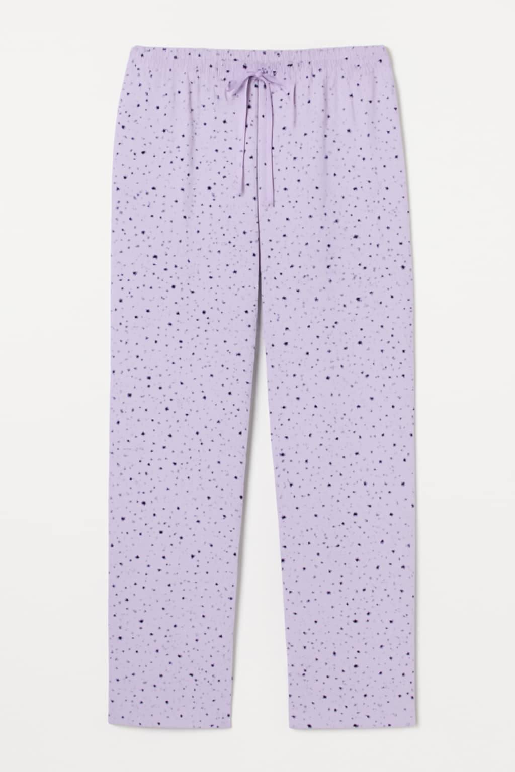 Modelul lila, decorat cu un imprimeu delicat de puncte mici, adaugă un plus de eleganță și feminitate. Talie elastică și șnur reglabil asigură o potrivire perfectă, iar croiala lejeră îi face ideali pentru purtare zilnică în casă.