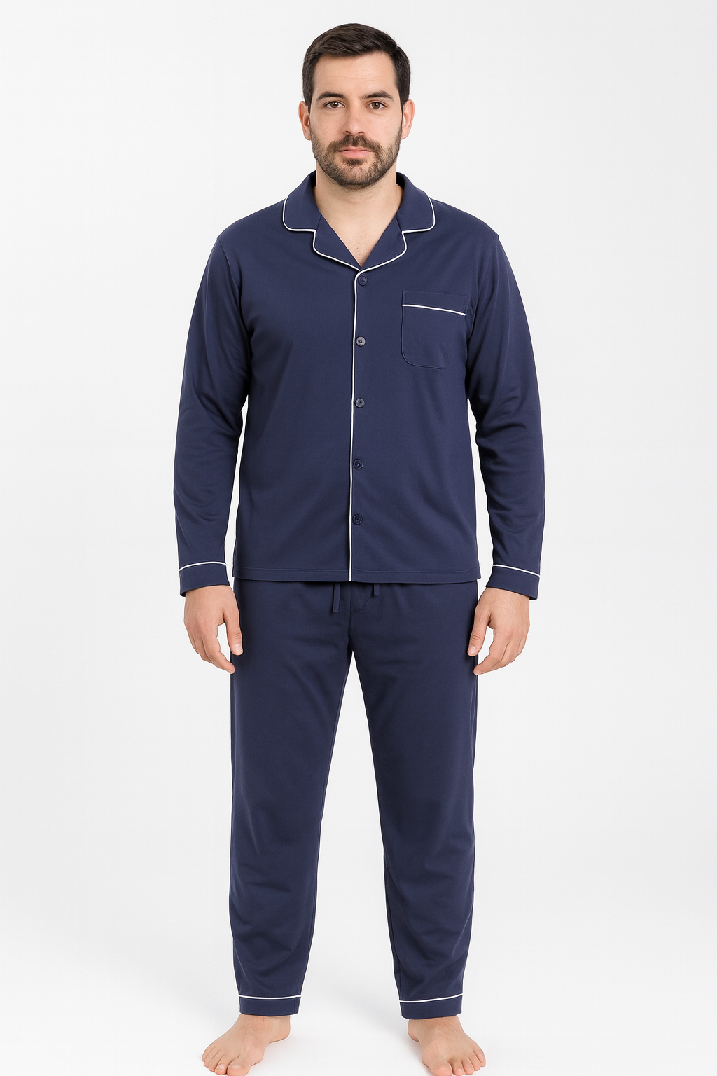 Pijama bărbați din bumbac cu nasturi, Bleumarin