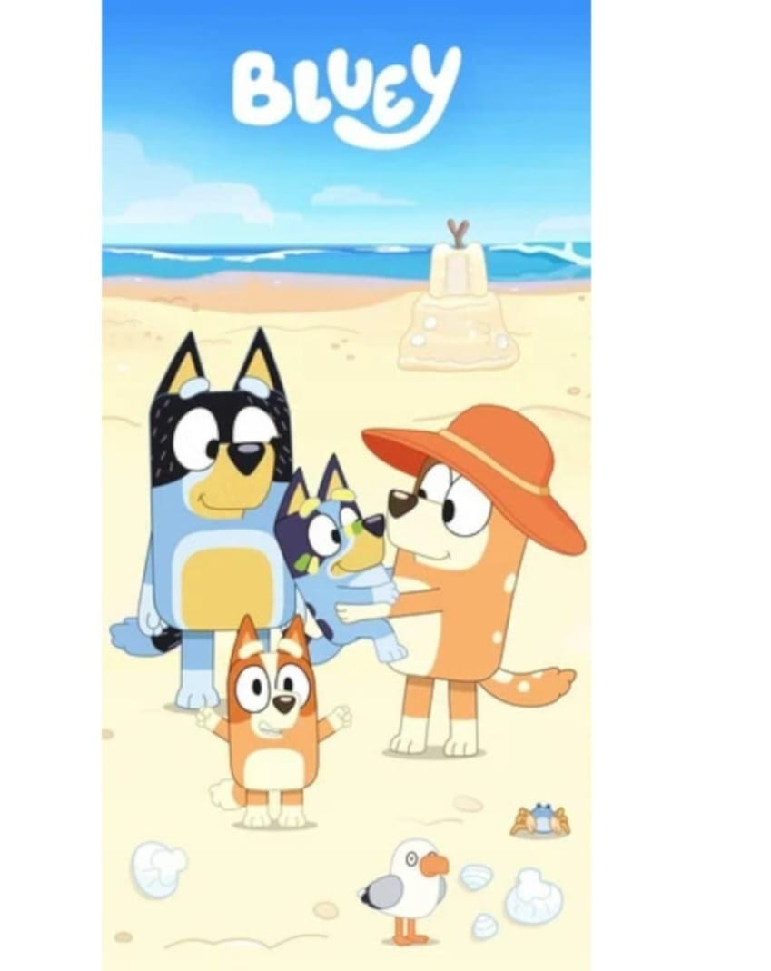 Transformă fiecare zi de plajă sau baie într-un moment plin de veselie cu acest prosop pentru copii cu tematică Bluey. Realizat din material moale și plăcut la atingere, prosopul este ideal pentru pielea sensibilă a celor mici. Designul colorat, inspirat dintr-un serial animat extrem de îndrăgit, aduce un plus de bucurie și imaginație în rutina zilnică a copilului.